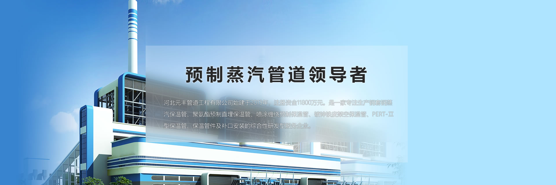 河北元豐管道工程有限公司始建于2013年,注冊資金11800萬元。是一家專注生產鋼套鋼蒸汽保溫管、聚氨酯預制直埋保溫管、噴涂纏繞預制保溫管、鍍鋅鐵皮架空保溫管、PERT-Ⅱ型保溫管、保溫管件及補口安裝的綜合性研發型服務企業。